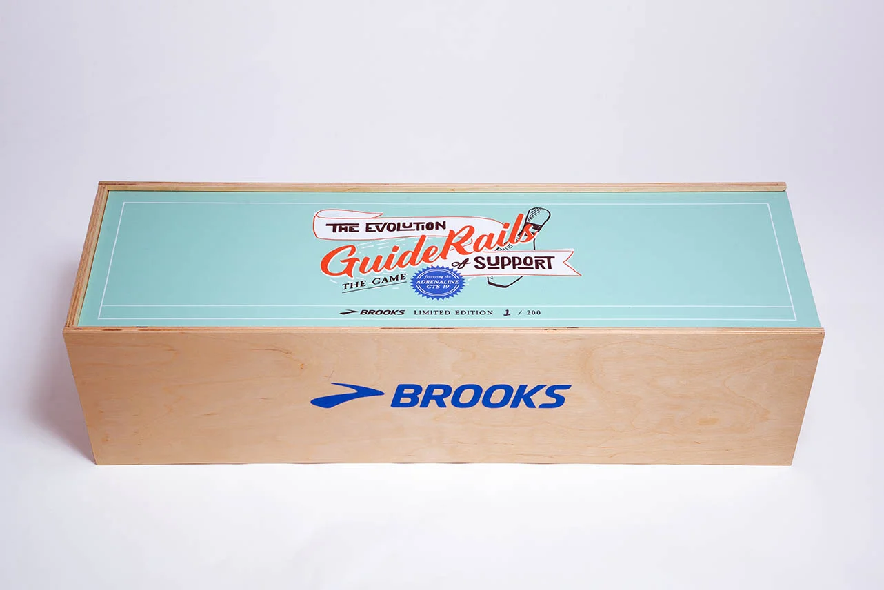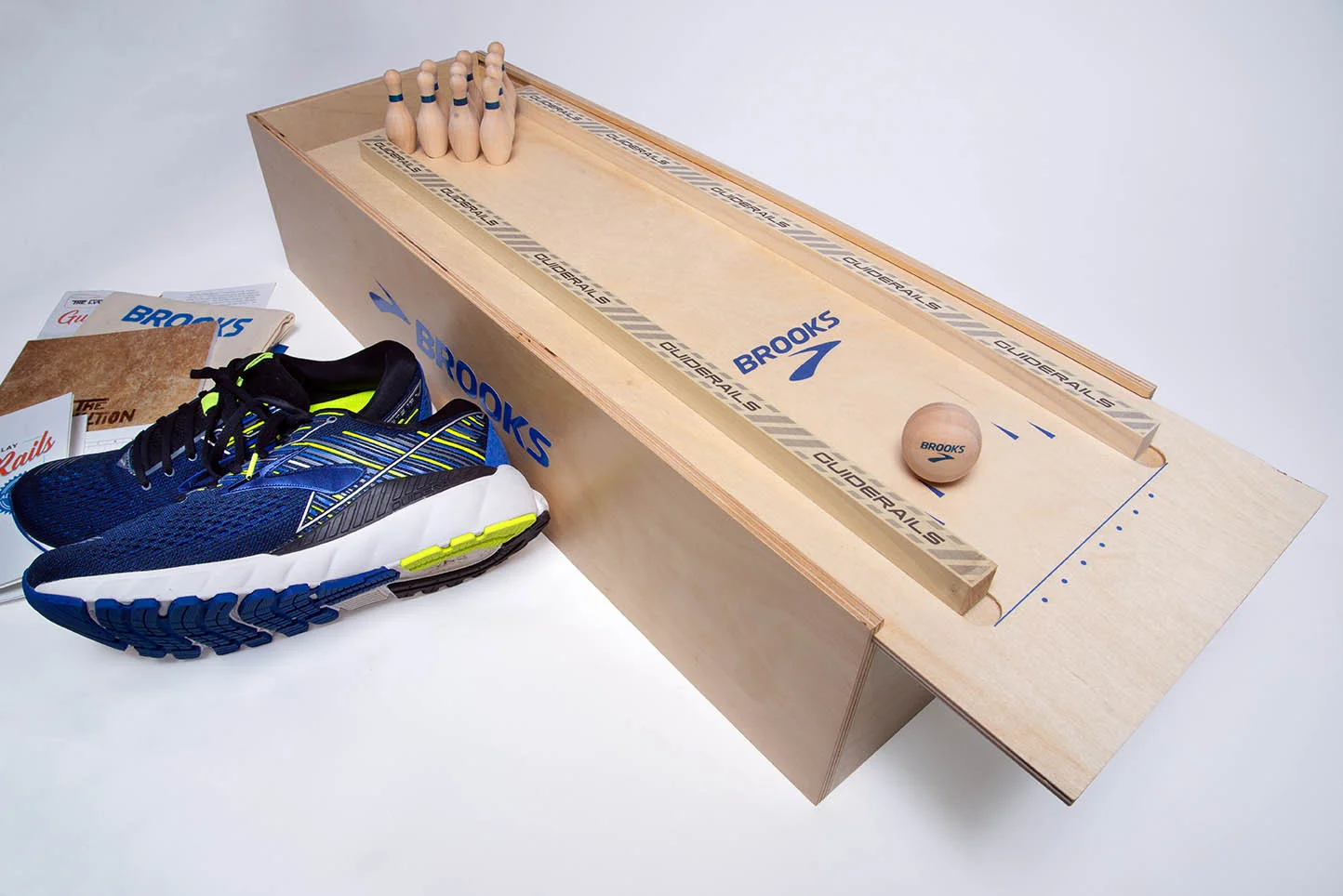 Kits included a runway, “GuideRails” bumpers, pins, ball, rule book, a picture book I wrote called The Evolution of Support, and the shoes which incorporate the new technology.